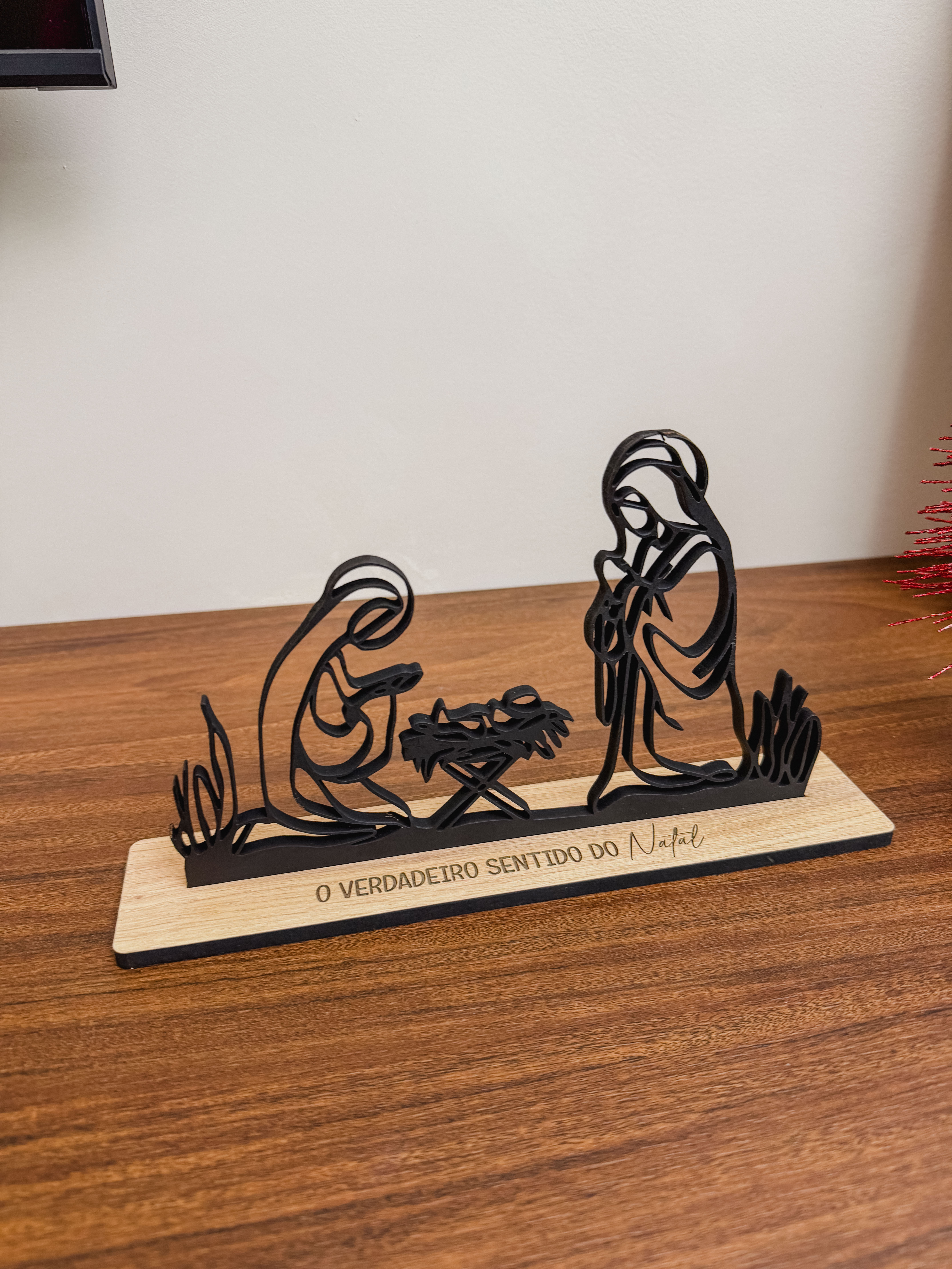 O enfeite O Verdadeiro Sentido do Natal traz a imagem de Maria com o menino Jesus na manjedoura, representada em um traço contínuo e elegante. Produzido em madeira de alta qualidade, é uma peça leve, moderna e cheia de significado — perfeita para quem ama unir fé e estilo na decoração.