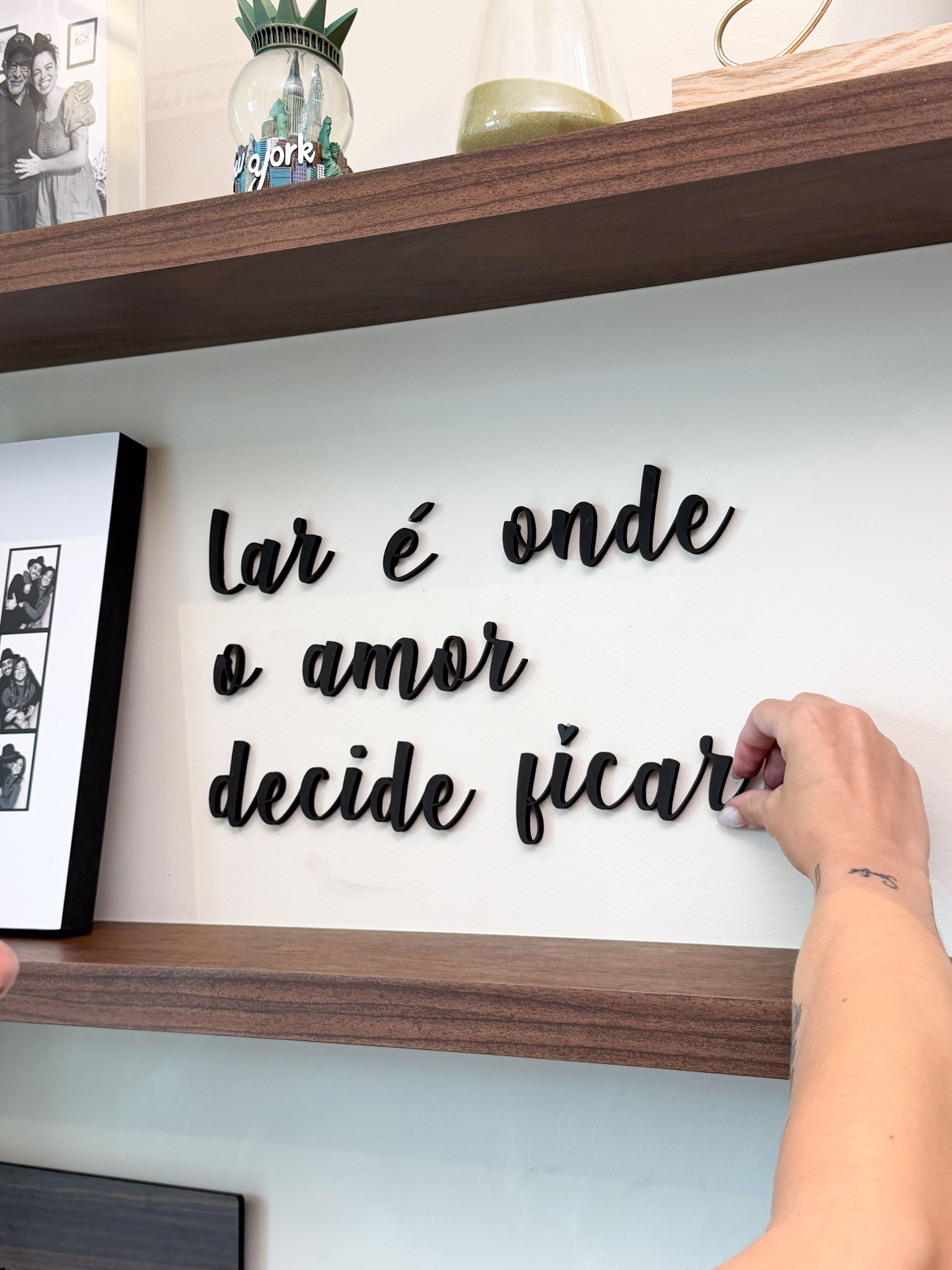 O Lettering Decorativo “Lar é onde o amor decide ficar” é uma peça afetiva e cheia de significado, pensada para transformar o ambiente com acolhimento e personalidade. Com uma mensagem delicada e inspiradora, ele valoriza a decoração e reforça aquilo que realmente importa: o amor presente nos pequenos momentos do dia a dia.