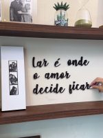 • Lettering decorativo com a frase “Lar é onde o amor decide ficar”