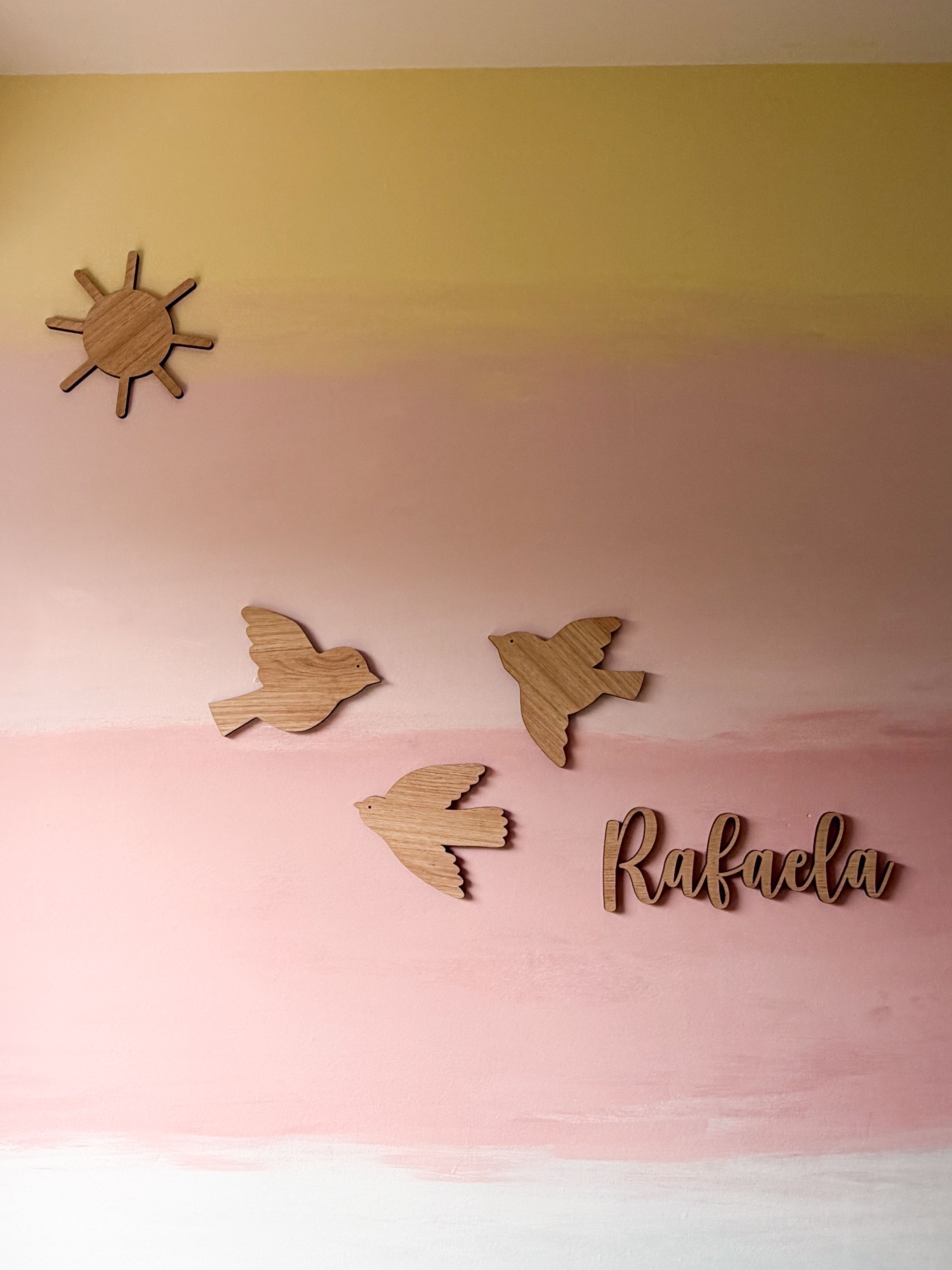 O Trio de Passarinhos com Sol é uma composição delicada que transmite leveza, liberdade e aconchego. Inspirado na simplicidade da natureza, o conjunto traz a suavidade dos passarinhos combinada com a energia acolhedora do sol, criando uma atmosfera alegre e cheia de significado.